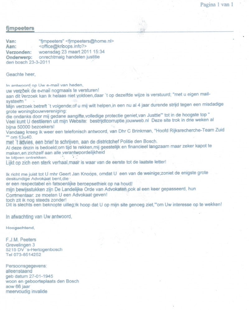DE NAVOLGENDE BRIEF, WORDT DAN NIET MEER BEANTWOORD!