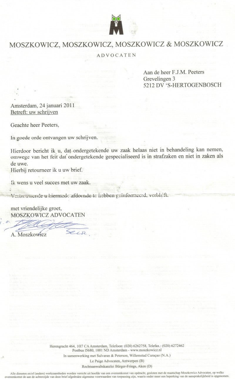 MIJN VERZOEK ADVOKATENKANTOOR MOSZKOWICH