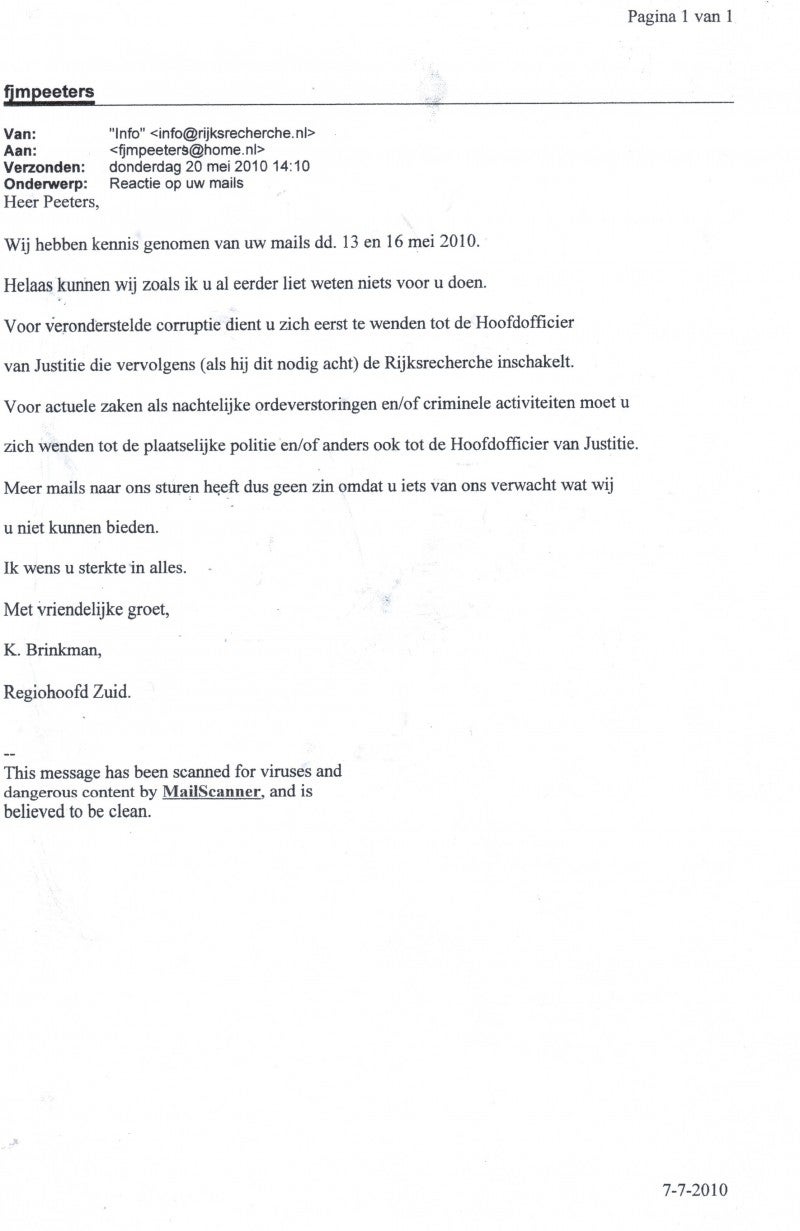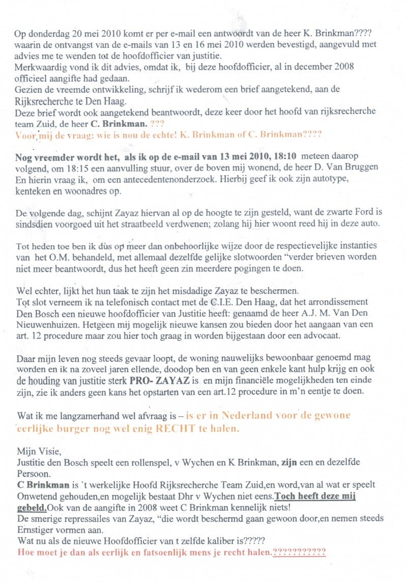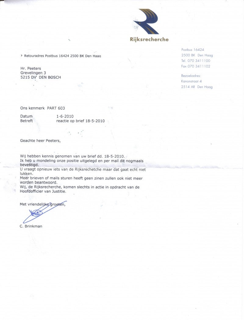 Bovendien komt `t antwoord weer van K. brinkman(lees Justitie den BOSCH)