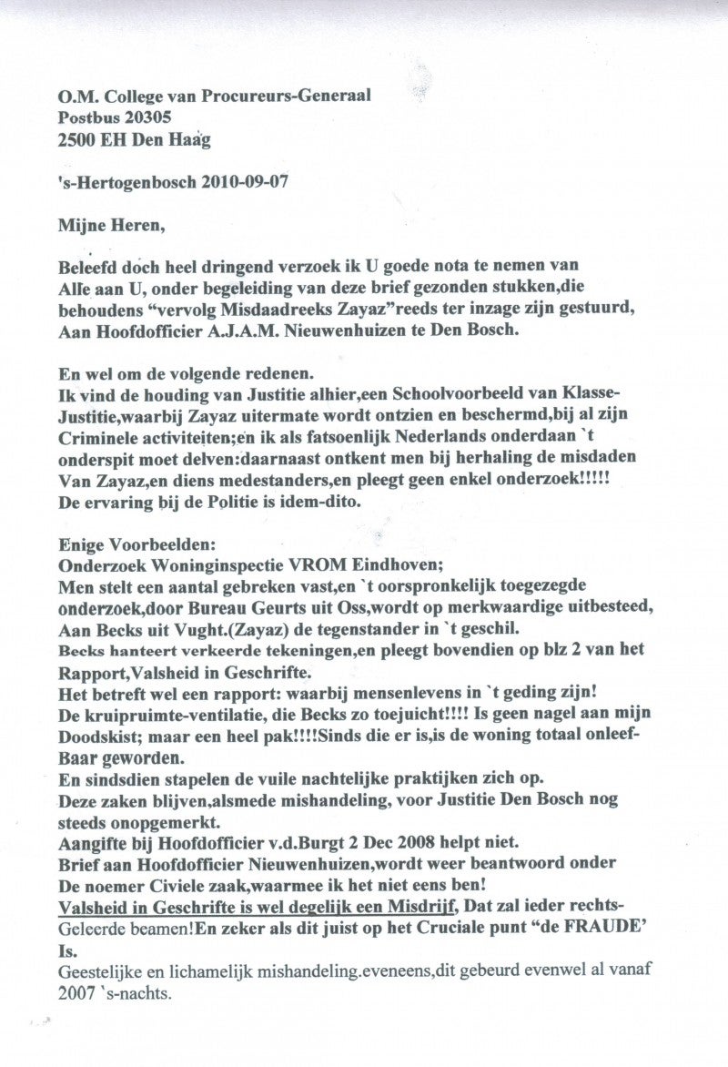 EERST BRIEF SCHREEF IK,AANGETEKEND OP 27-7-2007 AAN HOOFDOFFIER VAN jUSTITIE DEN BOSCH G.W.VAN DEN BURG;